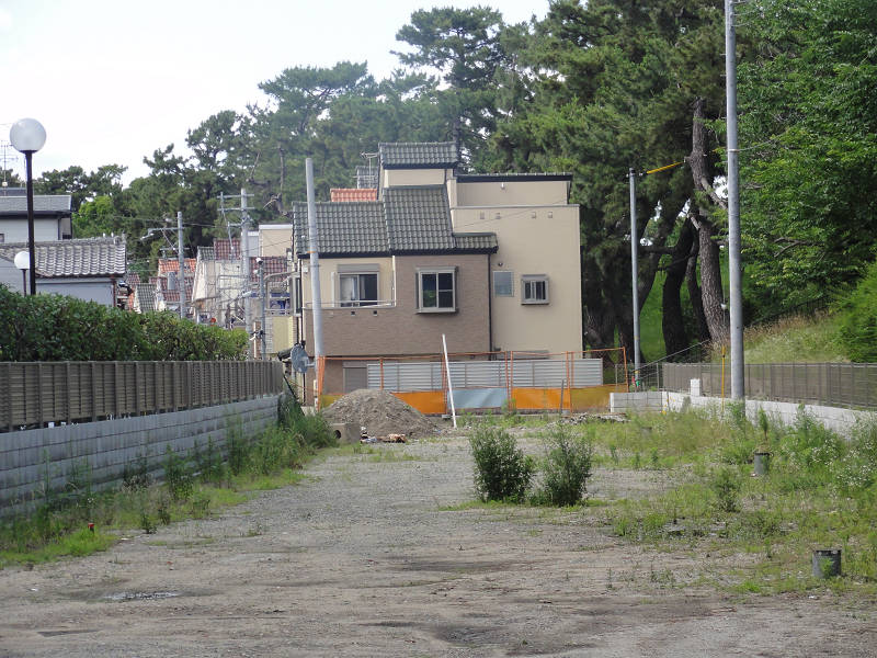 興味があって、線路の先を追ってみました。線路の跡には、新しい戸建ての住宅が並んでいる様が見えました。今もJRまで接続できていたら、便利だったのではないかと思ったりもしました。