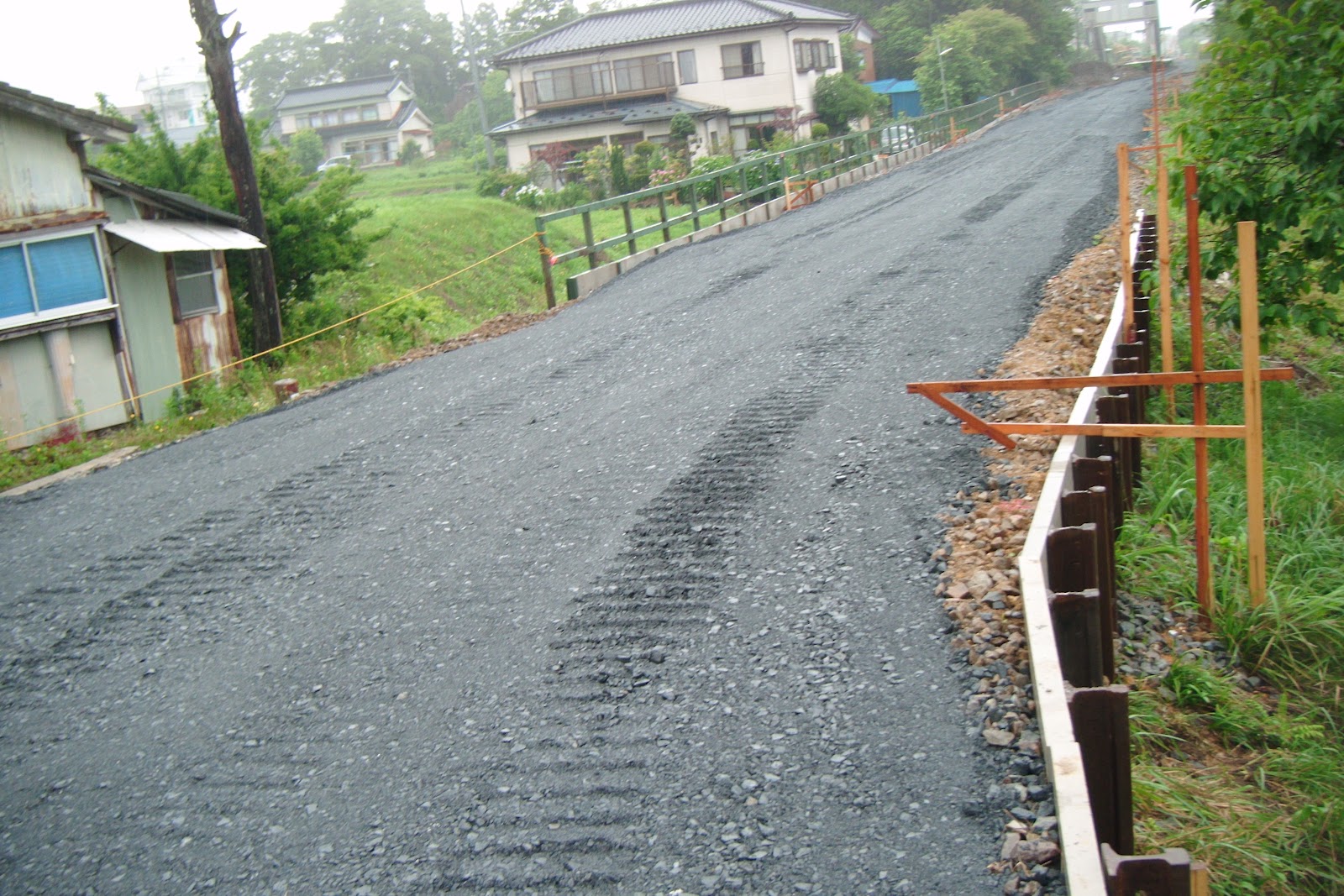 土留めの部材に廃レールを利用してますね。