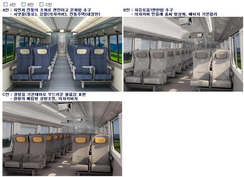 간선형(EMU)신형 새마을호, 여러 디자인 시안중에 E안이 최종선택 되었음.
