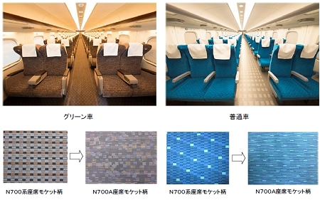 車内の快適さも向上している。普通車の座席の生地をより明るく開放感のある色調に変更。グリーン車では逆に、落ち着きのある雰囲気に空間を演出した。
