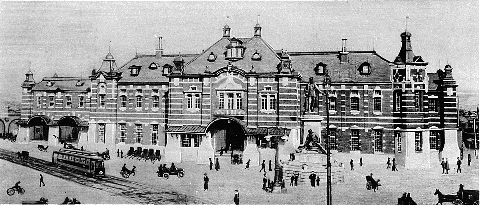 万世橋駅は1912(明治45)年、官設鉄道中央線(前身、甲武鉄道)のターミナルとして開業。併設されていた交通博物館(1936~2006年)が鉄道博物館となってさいたま市へ移転し、現在は同駅遺構の整備活用と高架下開発がすすめられている。