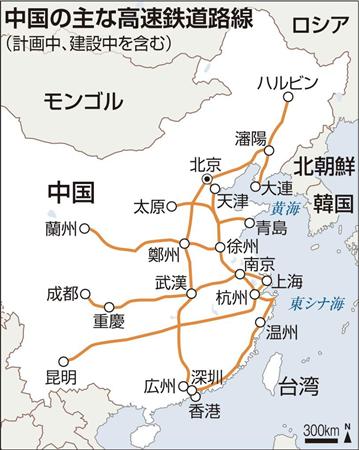 2011년 7월에 40명이 사망한 고속 철도 추돌 사고로「안전 경시」의 비판을 받아 한때는 건설공사가 전면 파업 프 한 고속 철도망이지만, 12년 후반부터 경제성장의 하한선책으로서 건설공사가 본격 재개했다.07년에 스타트 했던 바로 직후이지만, 벌써 북경-샹하이, 샹하이-항주, 정주-니시 야스등 잇달아 고속 철도가 개업.영업 킬로수는 총연장으로 9300킬로를 넘었다.금년은 한층 더 약 3천 킬로가 개업할 전망으로, 주요한 도시는 고속 철도망으로 연결되게 된다.