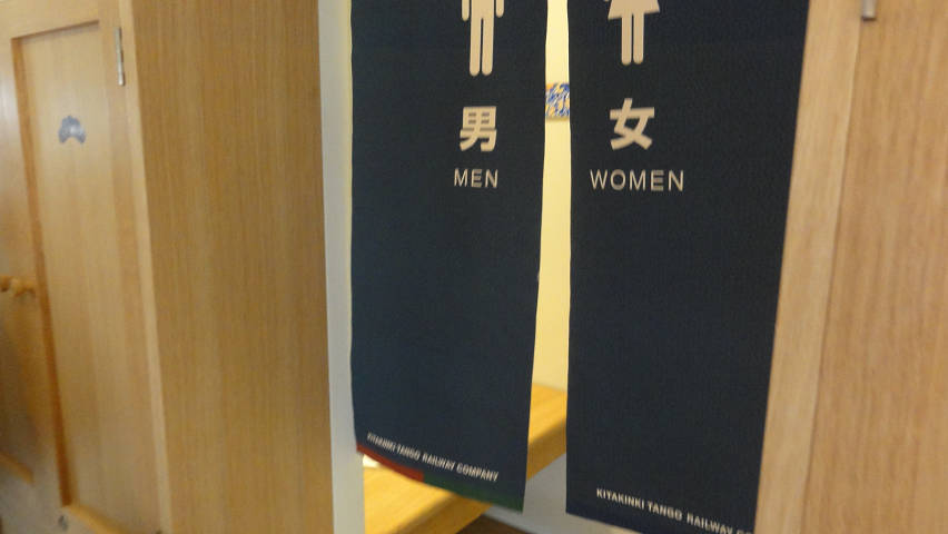 トイレは暖簾に男女分かれているように見えるが、トイレは1つで共用だ