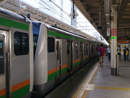 이케부쿠로-오사키역간에서 선로를 공유하는 쇼우난 신쥬쿠 라인을 타, 에비스역에 이동.내리고, 기다리는 것 5분.응이야 선직통의 싱키바행이 왔습니다.E233계 7000 접수대입니다.