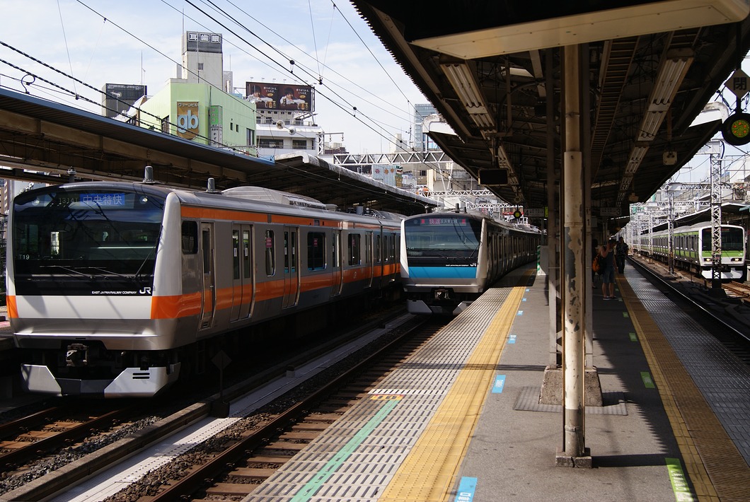 JR에비스역에서.왼쪽은 JR야마노테선용의 E231계 500 접수대, 오른쪽은 JR카와고에선・JR사이쿄선・도쿄 임해 고속 철도(TWR) 응이야 선용의 TWR70-000형입니다.