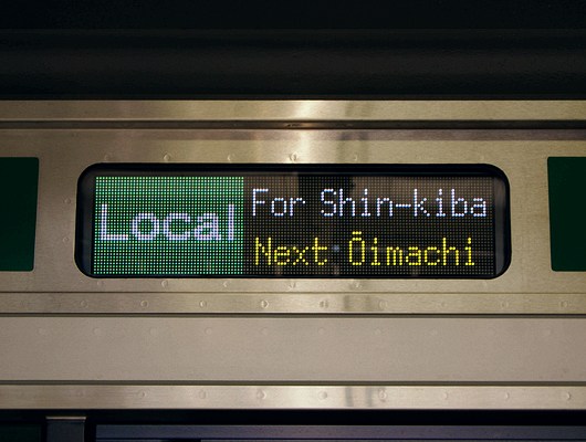外の行先表示器はフルカラーLEDです。総合車両製作所製ではなくJR東日本の自家製車両ということもあり、従来工法のステンレス車両です。