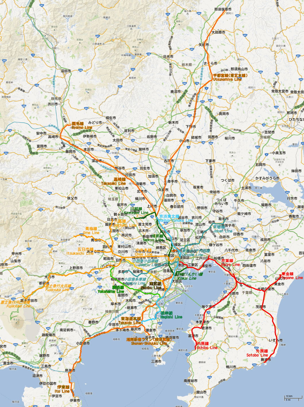 2014년도부터 2015년도에 걸치고, E233계가 달릴 구간.이탤릭은 JR동일본 이외의 노선입니다.향후의 운용을 생각하면, JR요코하마선이나 JR난부선은 물론, JR쇼우난 신쥬쿠 라인이나 JR이토선에서도 볼 수 있게 되는 것은・・・라고 생각합니다.