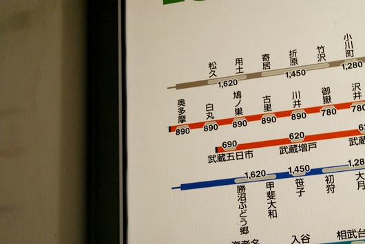 나카노역으로부터 이번 목적지인 우쿠타마역까지는 편도 890엔입니다.