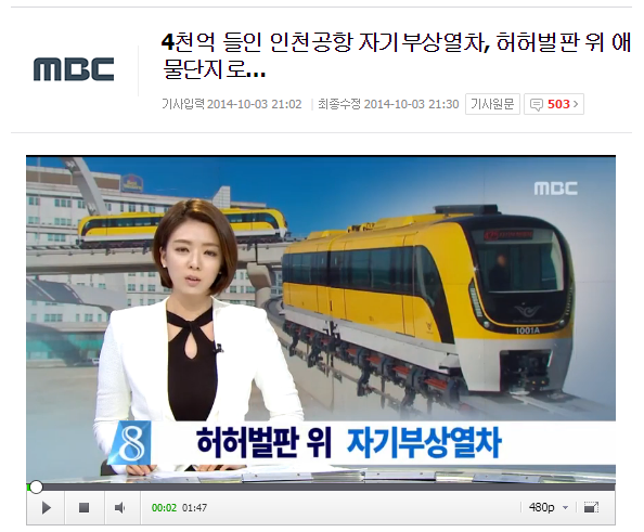 KJCLUB - 4千億ウォン投入された仁川リニアモーターカー, 果てしない大平原の上困り者と転落��