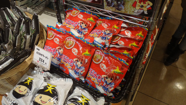 매점에서는, 하보로쵸의 연안 버스의 모에네캐릭터가 그려진 봉투 라면이 진열되고 있었어요.
