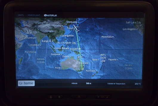 태풍을 회피한 왕로와 달라, 귀로는 시드니에서 도쿄까지 일직선으로 비행했습니다.