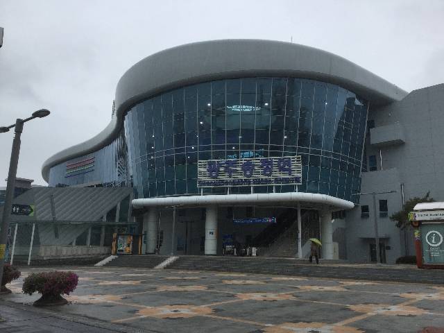 光州空港を横目にしながら12:40、ほぼ定刻でようやく光州松汀駅到着。釜山から337.1kmの鈍行旅行がようやく終わった。