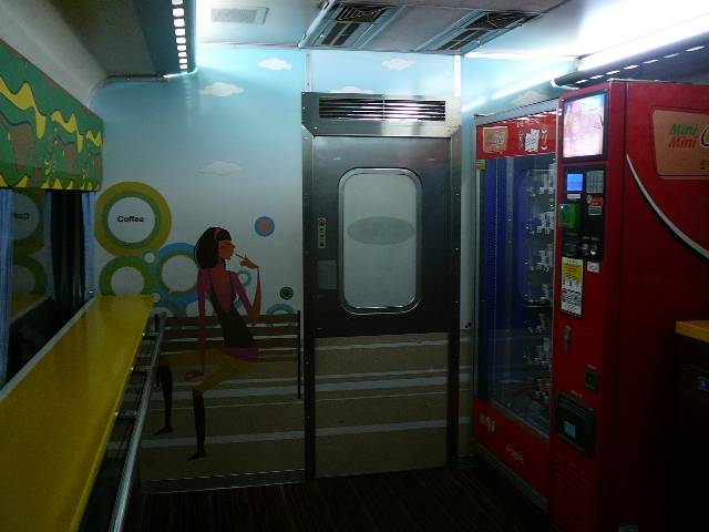 미니 카페라든가 하는 스페이스가 2호차에 있었지만, 자판기와 입식 있어 스페이스가 있을 뿐.자판기는 각종 교통 IC카드의 단말도 있었지만, 고장나 있는지 마침 있던 한국인도 포함해 구입하지 못하고, 현금으로 사는 것에.자판기 헛됨에 네야 w