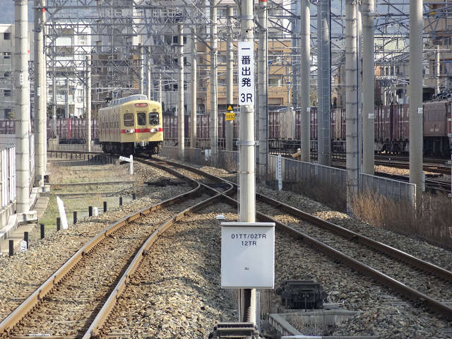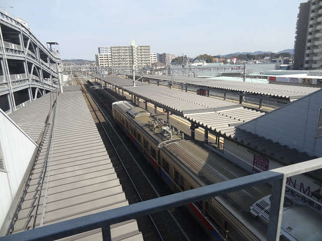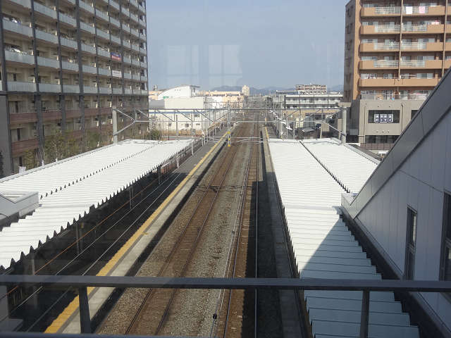 카이즈카역에는 돌아오지 않고, 다음의 나지마역에서 전철을 타기 위해서 걸었다.도중 국도 3호선에 걸리는 육교는, JR화물역으로 연결되는 선로가 지나고 있다.