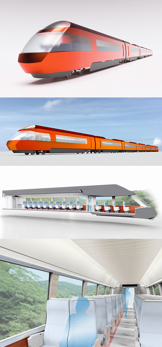 50000형「VSE」 등 근년의「로망스카」에 이어, 디자인을 담당하는 오카베헌명아키텍쳐(architecture) 네트워크의 오카베헌명대표(건축가)는, 선두 차량은 전체가 전망차와 같은 공간을 만들어, 중간 차량도 큰 창에 의해 뛰어난 전망을 확보했다고 합니다.또 오카베씨에 의하면, 차량의 붉은 외장은 오타큐의 전통색인「버밀리온」에 유래해, 장미의 색을 베이스로 해 가고 싶다고 생각하고 있다고 합니다.