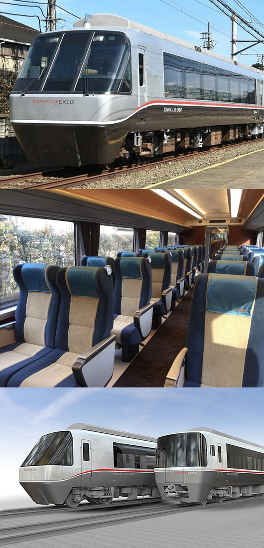 이「EXE」는 특급용 차량으로서 일반적인 구조를 가져, 일상의 통근 통학 수요에의 대응도 강하게 생각할 수 있던 차량.리뉴얼에서는 실내 디자인의 변경이나 온수 세정편좌의 설치등이 행해져「EXEα」로 다시 태어납니다.영업 운전 개시는 2017년 3월의 예정입니다.