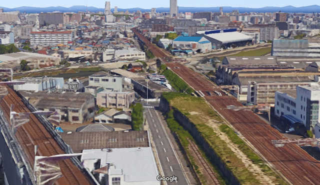 Googleの3Dマップを見ても、真ん中にある名鉄は線路の上にも建物があるのに、JRにはない。