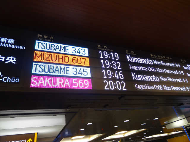 改札を通ると、多色な電光掲示板。新幹線は、韓国と違いサービス名が1つ(最近2つ目ができたようだけど)ではなく、路線とランクで様々。NOZOMI、KODAMA、MIZUHO、SAKURA、TSUBAMEなど、純粋な日本語の名称で、果たして、外国人には把握できるのかと思います。そう言えば、博多駅ではHIKARIは見つけ難いですね。