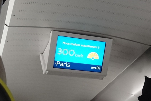 電車は順調に最高速度300km/hで走り、定刻の3分遅れでParisに到着しました。
