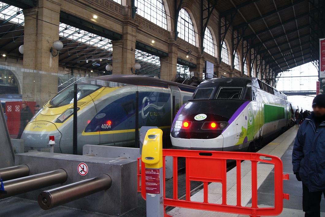 Class 374「EUROSTAR」と2016年4月から営業を開始したTGV-R「IZY」。「IZY」は、「Thalys」と同様にParisとBrusselsを結んでいますが、在来線区間が長いため所要時間が30分から40分程遅いのが特徴です。その分、運賃が格安になっています。