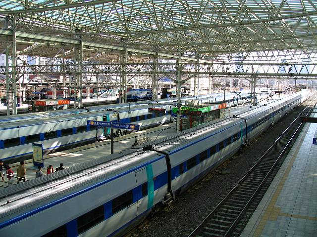 ソウル駅と東京駅の違いと言えば、東京駅は100年以上前から、線路が高架にある駅だが、ソウル駅は地上に線路がある。