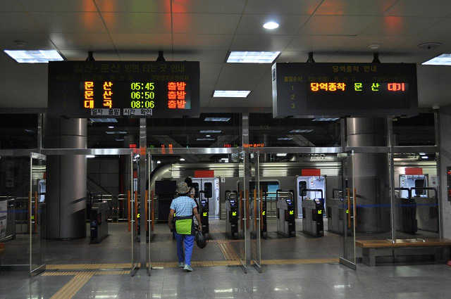 ソウル駅の西側の地下深くには、仁川空港鉄道の始発駅がある。ノンストップの直通は1000系電車、各駅停車は2000系電車という違いの他に、ソウル駅では改札もホームも違うらしい。