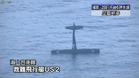 2015년 4월 28일, 아시즈리미사키바다에서 이수 훈련중이었던 US-2(9905)의 엔진 1기와 플로트가 탈락해, 기내에 침수해 기수로부터 바다 속에 잠겼다.승무원은 구명보트로 탈출한 것을을 근처를 항행하고 있던 탱커에 구조되었다. 사고 직후, 기체는 해면에 떠 있어 수몰을 막기 위해 기체와 대선 로프로 묶고 있었지만, 로프가 빗나가 수심 300 m의 해저에 가라앉았다.해상 자위대에서는 인상을 검토하고 있다.