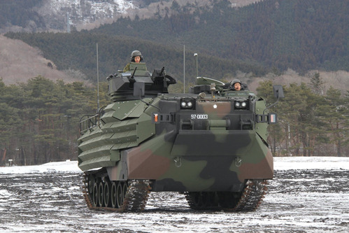 2016年度予算案の概算要求で、防衛省は陸上自衛隊向けの水陸両用車「AAV7」11両の取得費として74億円を計上。