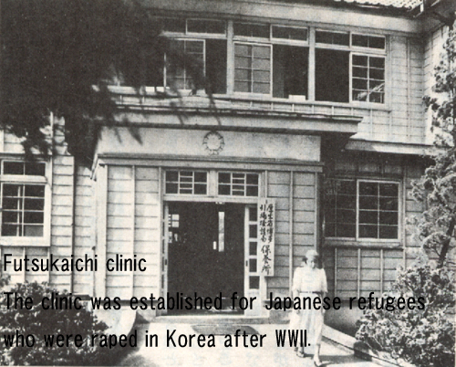 후쓰카이치 휴양소는, 귀환자의 구제 활동을 하고 있던 재외 동포 원호회구료부에 의해서, 전시중의 애국 부인회 휴양소의 건물을 이용해, 1946년 3월에 개설되었다.인양의 혼란 중(안)에서 폭행을 받아 임신한 여성의 중절이나 성병의 치료등에 약 1년반에 걸쳐서 휴.