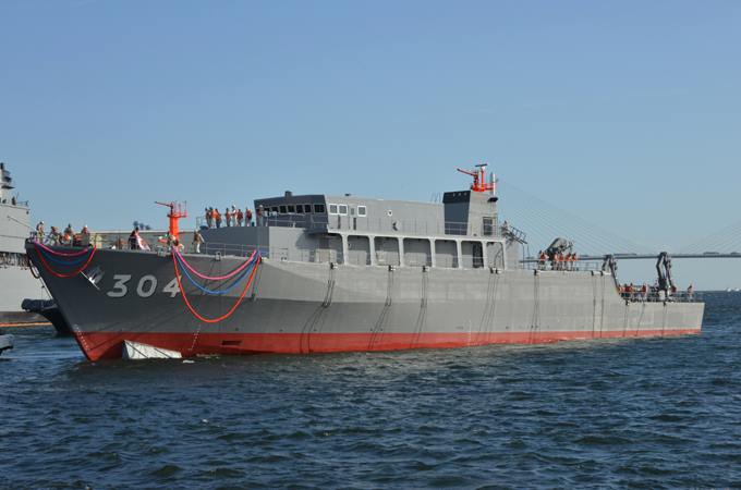 同艦は全長67メートル、基準排水量690トン。強度や耐久性が高い繊維強化プラスチック(FRP)製の掃海艦としては、これまで最も大きかった「えのしま」型掃海艇より約120トン大型化した。より深い位置の機雷掃海も可能になるという。