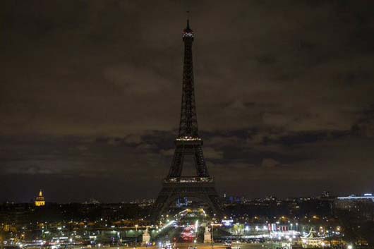 테러의 희생자를 위해 에펠탑의 전광 장식이 사라져…,