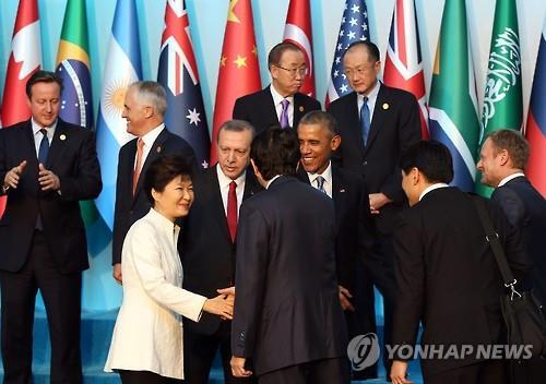 安倍晋三首相は15日午後(日本時間同日夜)、トルコのアンタルヤで開かれている20カ国・地域(G20)首脳会合の場で席が隣になった韓国の朴槿恵(パク・クネ)大統領と会話を交わした。