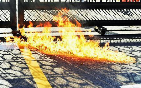男は僧侶の服装で外務省前に現れ、火を付けた火炎瓶を投げようとしたが、警官が阻止。火炎瓶はその場に落ち、警官らがすぐに消し止めた。