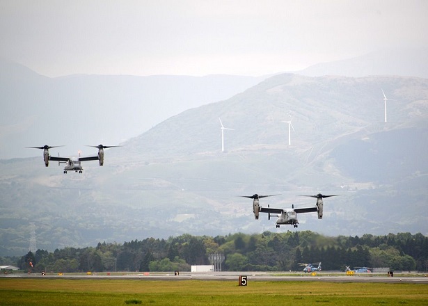 被災地に派遣されたオスプレイは、沖縄県宜野湾(ぎのわん)市の米軍普天間飛行場所属の2機。米軍岩国基地(山口県岩国市)を経由し、18日午後に陸上自衛隊高遊原分屯地(熊本県益城町)に到着。水や食料、毛布など約20トンの物資を積み込み、南阿蘇村の白水運動公園に空輸した。