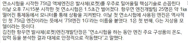 KSLV2 75톤급 엔진1호기 첫 연소시험 성공