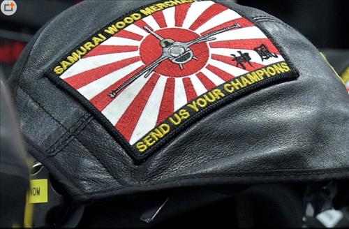이 마크에는, F-16 전투기의 이미지와 「사무라이」(SAMURAI)이라고 하는 영어 표기도 새겨지고 있다.