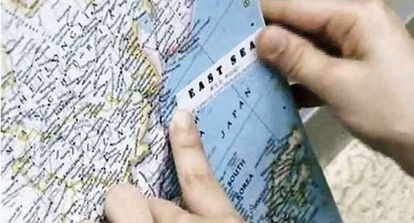 米国人図書館司書の引き止めにもかかわらず、韓国人達は、日本の歴史歪曲を正す仕事をするのだと無視し、結局英語の地理の本に、EAST SEAのステッカーを付けた。