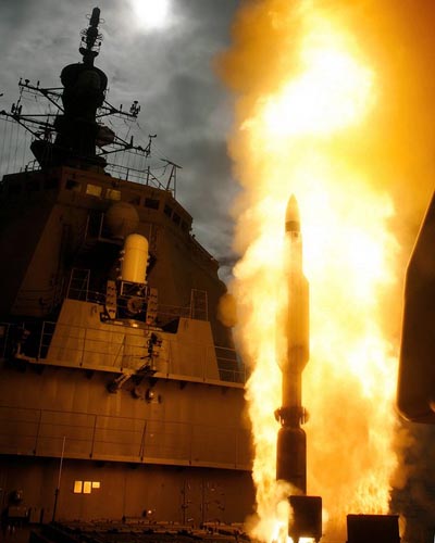 이지스 전투 체계는 탄도 미사일 방위를 수행할 수 있는 통합된 함정 대공 방어망.▼레이더-(SPY-1 D)를 통한 표적 탐지 및 추적▼지휘 통제부에서 표적 결정 및 무장 할당▼미사일 교전 계획 수립 및 수직 발사 체계로 미사일 발사▼미사일 발사 후 유도 시스템 가동▼교전 평가--의 순서에 진행된다.