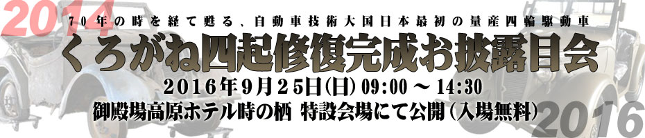 25日の一般公開イベントは、静岡県御殿場市の「御殿場高原ホテル時の栖」内の特設会場で午前9時から午後2時半まで実施する予定。くろがね四起のほかアメリカのジープやドイツの同様の軍用車両も展示し、各国の開発思想や技術の違いを見ることができる。