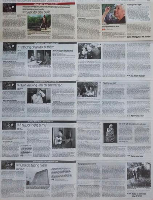 베트남 전쟁 당시 , 군의 민간인 학살 보도가 게재된 일간 트오이체의 1~5회의 보도 내용.주로 생존자의 증언이 포함되었다.한베 평화 재단 제공