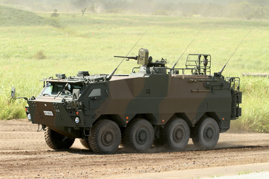 開発中の軽量戦闘車両システムは、低反動砲を装備した「火砲型」と、対爆性能を持たせた「人員輸送型」の2種類があり、今回披露されたものは後者寄り。機動性能を確認するための車両となる。すでに配備が始まっている「NBC偵察車両」をベースに改造したという。