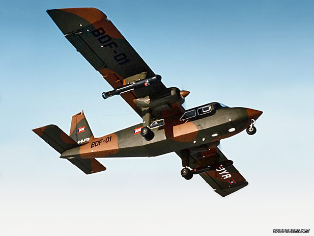 벨리즈 상공에 비행중인 BN-2B-21 근접 지원기