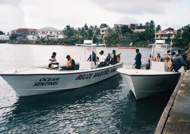 벨리즈 강변을 순찰중인 벨리즈 Spcial Boat Unit 보트