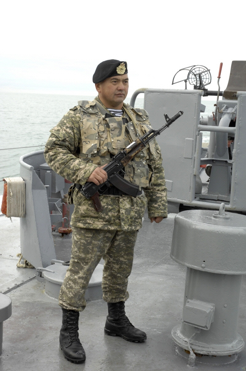 AK-74 小銃を持っているカザフスタン海軍陸戦隊.