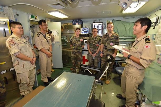 派遣海賊対処行動水上部隊(DSPE)「いかづち」は、派遣海賊対処行動支援隊(DGPE)の隊員及び在ジブチフランス軍病院関係者を招き、医療衛生交流を実施しました