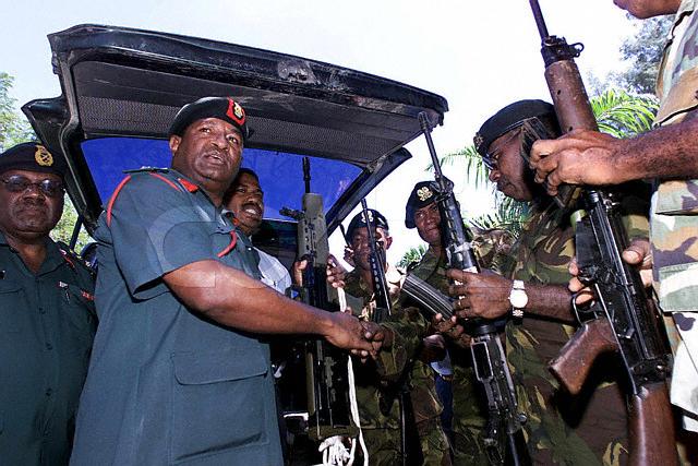 SA-80 突撃小銃を持っているパプアニューギニア国防軍司令官.L1A1 SLR 小銃も見えます.