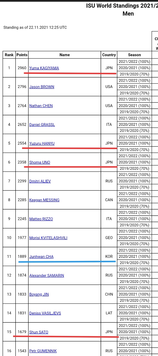 피겨 스케이트 세계 랭킹