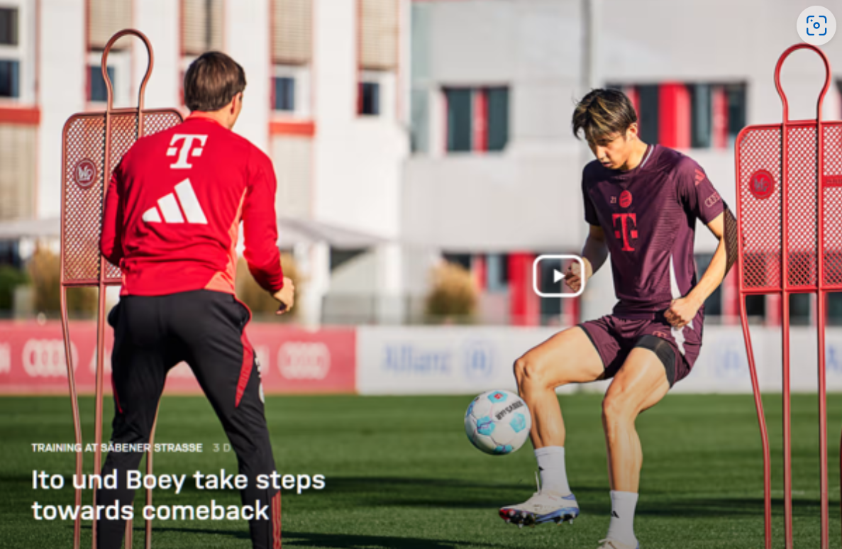 이토의 복귀가 임박했다는 소식이 전해졌다. 뮌헨은 9일(이하 한국시간) 구단 홈페이지를 통해 "뮌헨 선수 두 명이 복귀를 위해 한 걸음 더 나아갔다. 이토 히로키는 중족골 골절 부상을 당한 뒤, 월요일 아침 다시 공을 활용한 훈련을 소화했다. 사샤 보이는 반월판 파열 부상 이후 처음으로 훈련장을 몇 바퀴 돌았다"고 발표했다.