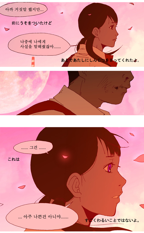 나는 많이 감동받았었어요. 한국의 만화에서 가능성을 발견해서 기뻤어요.