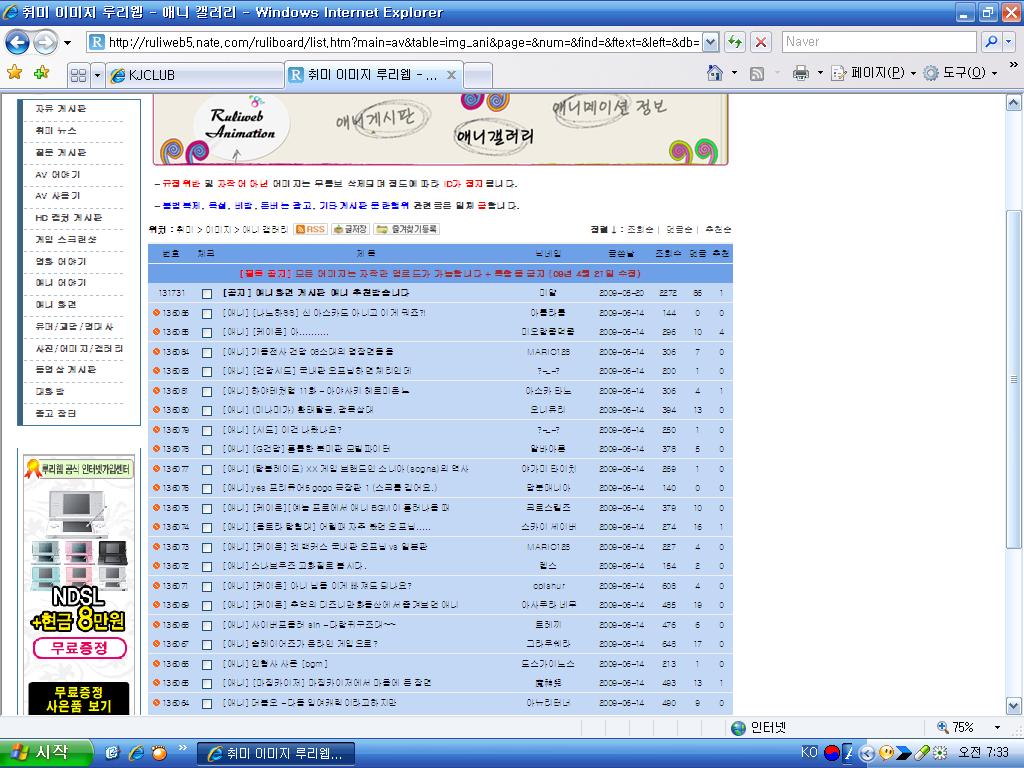 루리웹 애니 게시판 http://ruliweb.nate.com/ruliboard/list.htm?main=av&table=hb_ani